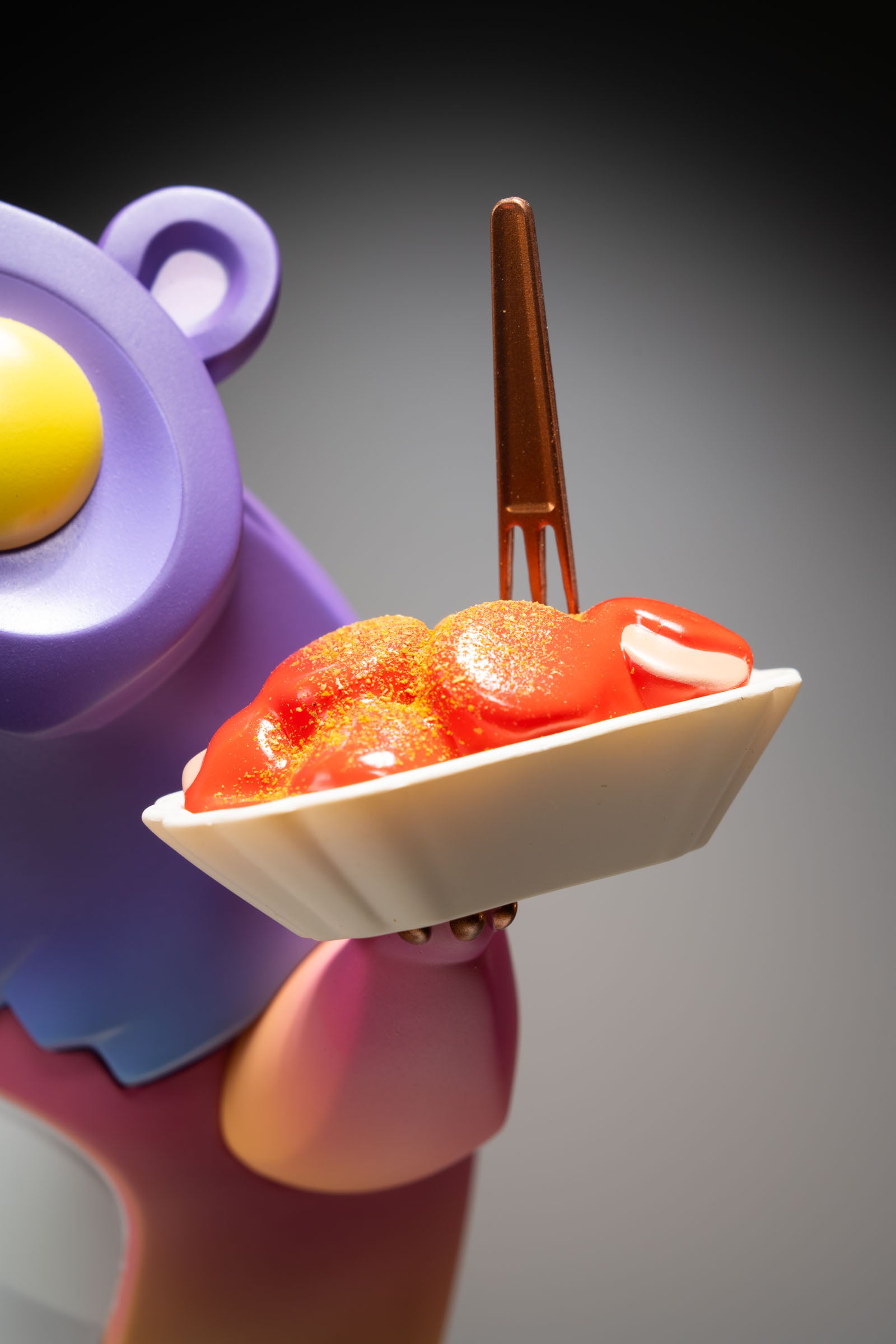 When Bärlicious eats, he dives right in. Bathing in Berlin's signature curry sausage with a dash of classic curry powder, Bärlicious loves the food that makes him happy.